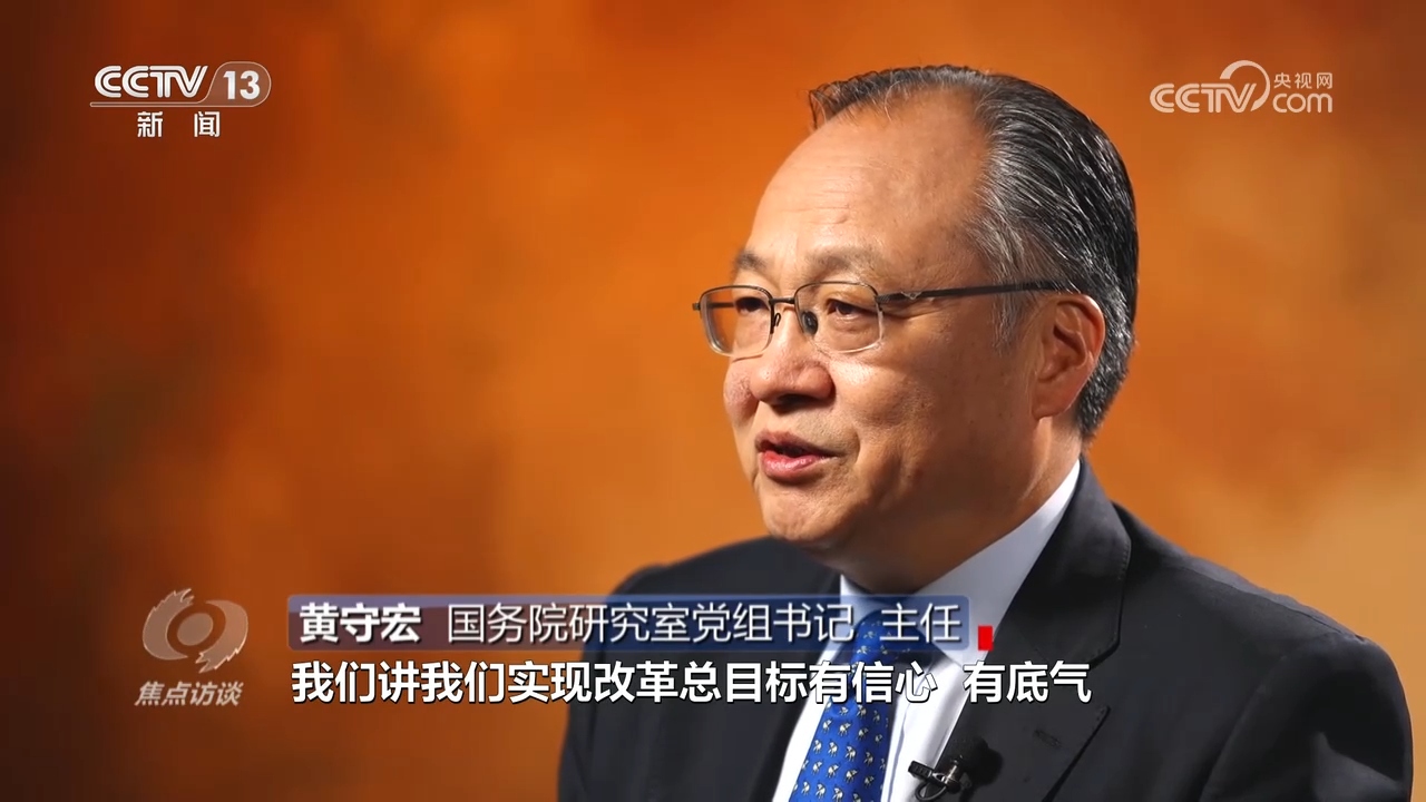 黃守宏:“在進一步全面深化改革總目標中,明確了到2035年的階段性改革目標,‘七個聚焦’的分領域改革目標,明確了到2029年完成《決定》提出的改革任務的要求,形成了在總目標的統領之下,有總有分、總分結合、體系完備的目標體系和推進改革的時間表、路線圖、任務書。”