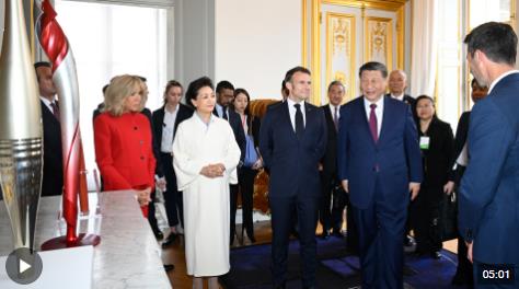 兩個多月前,國家主席習近平在巴黎愛麗舍宮同法國總統馬克龍舉行會談。會談前,兩國元首夫婦互贈禮品。習近平主席贈送給馬克龍總統的是北京雙奧火炬,馬克龍總統則以巴黎奧運火炬回贈。習近平主席說:“法國是一個體育強國,我衷心祝愿巴黎奧運會取得成功。中方將派出高水平代表團赴法參賽。”