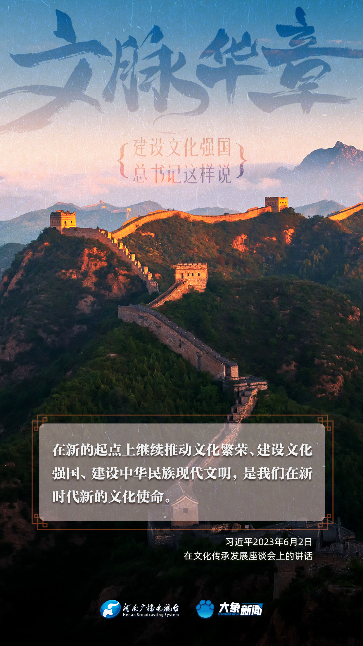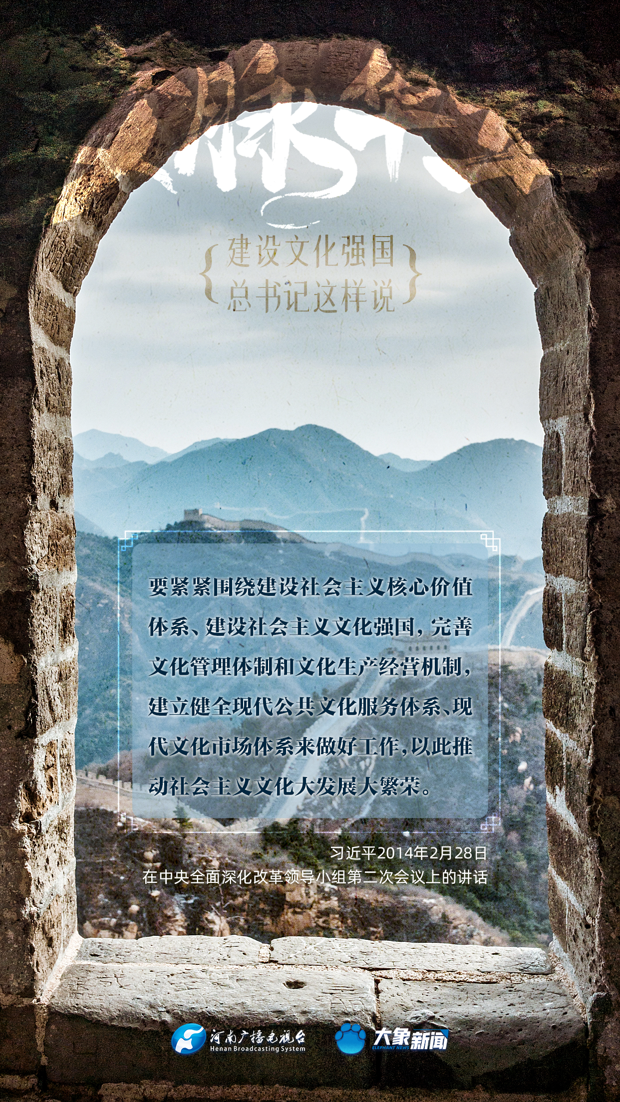 黨的十八大以來,習(xí)近平總書記站在全局和戰(zhàn)略高度,就建設(shè)社會(huì)主義文化強(qiáng)國提出一系列新思想新觀點(diǎn)新論斷,為我們堅(jiān)定文化自信,堅(jiān)持中國特色社會(huì)主義文化發(fā)展道路,提供了指引。大象新聞與您一起學(xué)習(xí)、領(lǐng)悟。