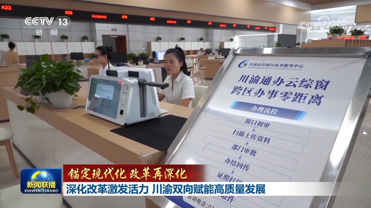 川渝高竹新區地處四川、重慶交界,由四川廣安市和重慶渝北區部分行政區域組成,是全國首個跨省域共建的新區。在前不久建成投用的新區政務服務大廳,10多個服務專區里川渝兩地合署辦公,將百余項業務合并辦理,為新區企業和百姓提供了“進一扇門,辦兩地事”的便捷體驗。