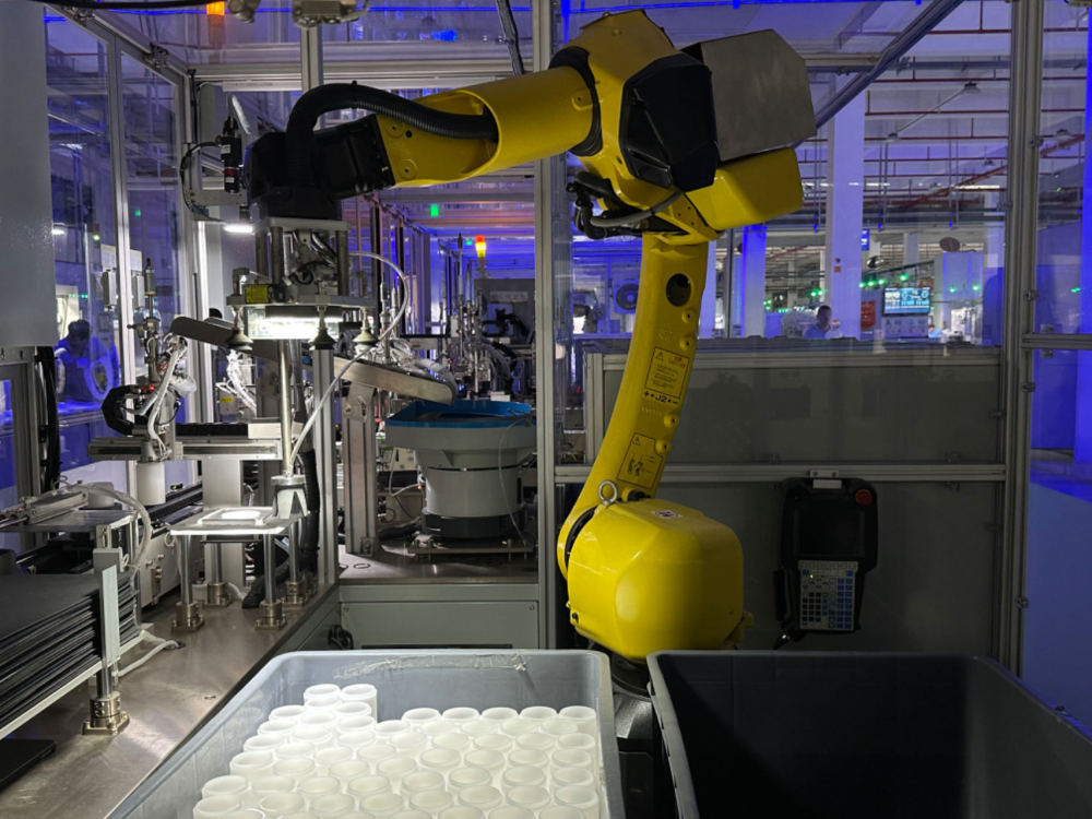 在九牧集團精密注塑車間,數(shù)臺自動搬運機器人在車間與倉庫間穿梭,注塑機臺上的機械臂搭載紅外攝像頭,自動抓取物料。