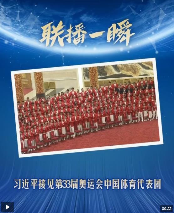 習(xí)近平20日下午在人民大會(huì)堂接見(jiàn)第33屆夏季奧林匹克運(yùn)動(dòng)會(huì)中國(guó)體育代表團(tuán)全體成員。