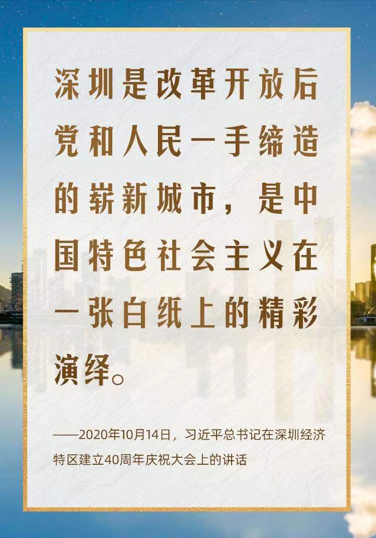 2020年10月,在慶祝深圳經濟特區建立40周年之際,習近平總書記又一次來到這里,出席慶祝大會,強調改革不停頓、開放不止步,在更高起點上推進改革開放,推動經濟特區工作開創新局面。