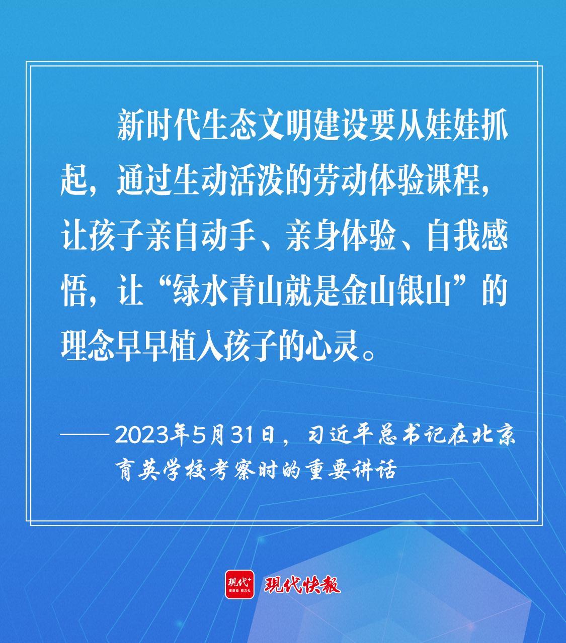 2023年5月,習近平總書記在北京育英學校考察時強調,新時代生態文明建設要從娃娃抓起,通過生動活潑的勞動體驗課程,讓孩子親自動手、親身體驗、自我感悟,讓“綠水青山就是金山銀山”的理念早早植入孩子的心靈。