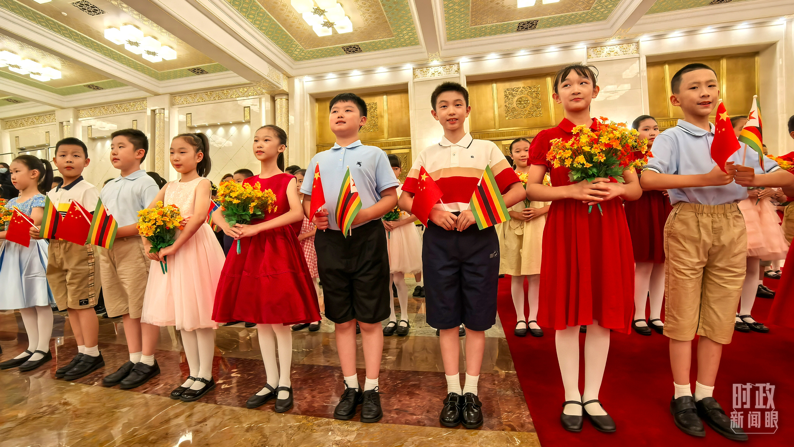 △現(xiàn)場歡迎津巴布韋總統(tǒng)訪華的青少年。(總臺(tái)央視記者鐘銳拍攝)