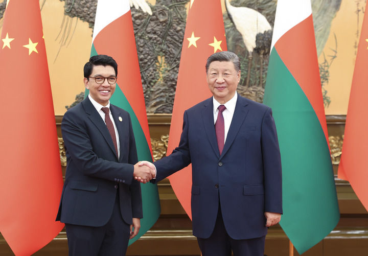 9月6日下午,國家主席習近平在北京人民大會堂會見來華出席中非合作論壇北京峰會的馬達加斯加總統拉喬利納。兩國元首宣布,將中馬關系提升為全面戰略合作伙伴關系。
