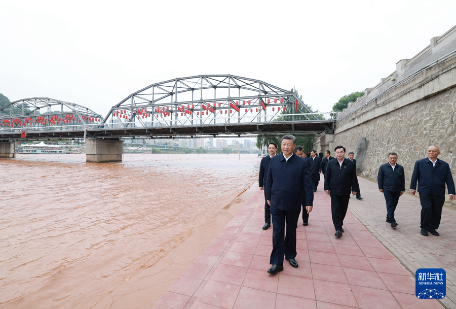 9月10日至13日,中共中央總書記、國家主席、中央軍委主席習近平在甘肅考察。這是11日下午,習近平在黃河蘭州中山橋段考察。新華社記者 王曄 攝