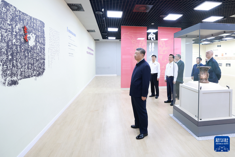 9月10日,中共中央總書記、國家主席、中央軍委主席習近平在前往甘肅考察途中,來到陜西省寶雞市參觀寶雞青銅器博物院。新華社記者 王曄 攝