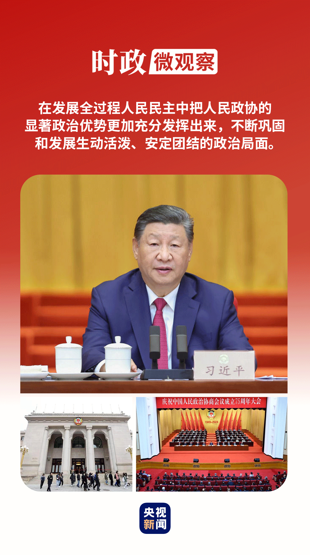 在慶祝大會上,習近平總書記強調:“我們要更加堅定道路自信、理論自信、制度自信、文化自信,在發(fā)展全過程人民民主中把人民政協(xié)的顯著政治優(yōu)勢更加充分發(fā)揮出來,不斷鞏固和發(fā)展生動活潑、安定團結的政治局面?!?/p>