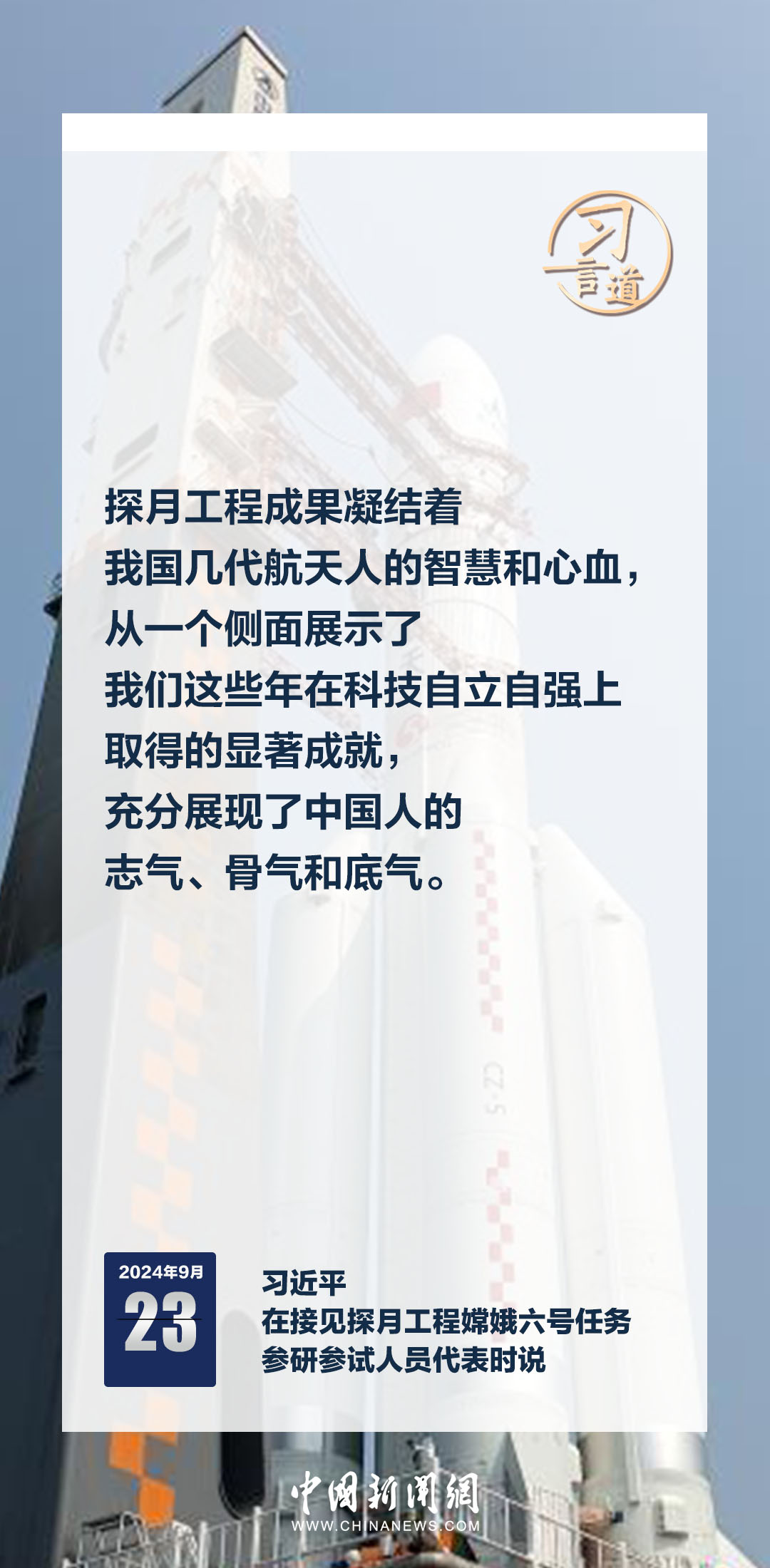 中共中央總書記、國家主席、中央軍委主席習近平23日在人民大會堂接見探月工程嫦娥六號任務參研參試人員代表時發表重要講話。習近平指出——