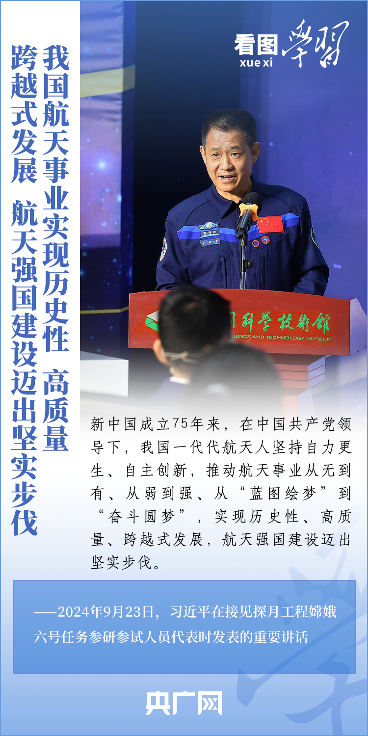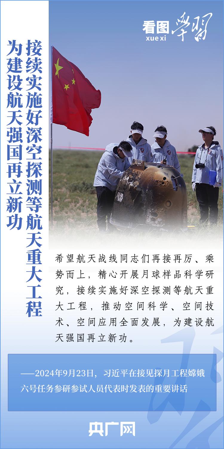 中國探月工程成果凝結著我國幾代航天人的智慧和心血。9月23日,習近平總書記接見探月工程嫦娥六號任務參研參試人員代表并發表重要講話。總書記高度肯定嫦娥六號任務成功的重要意義,以及探月工程為我國航天事業發展、為人類探索宇宙空間作出的重大貢獻,勉勵航天戰線工作者再接再厲、乘勢而上,為建設航天強國再立新功。一起來學習!