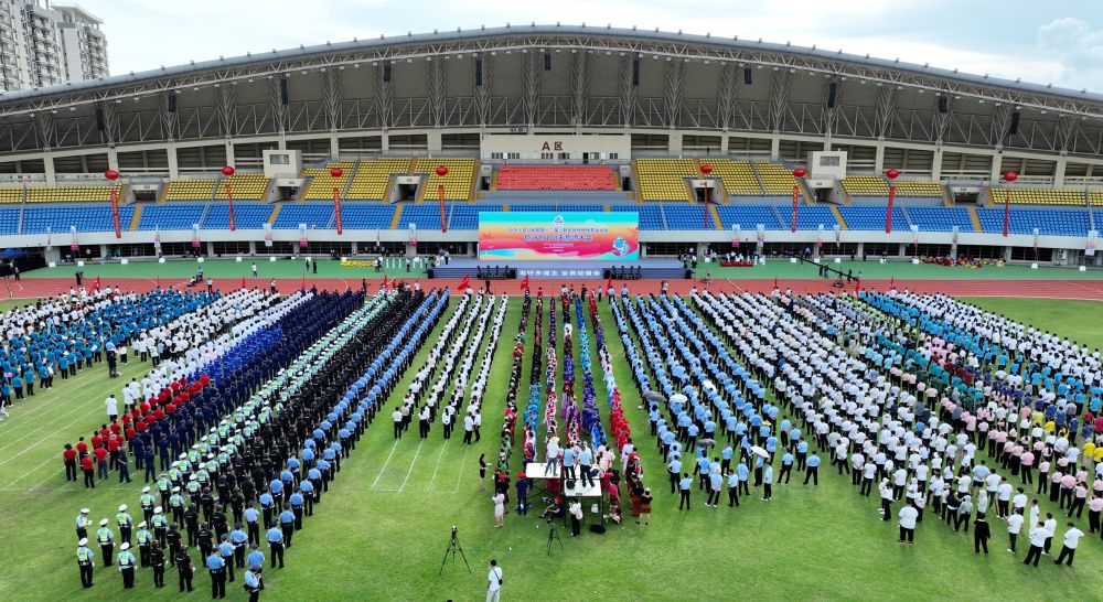 2024年8月14日,第十二屆全國少數民族傳統體育運動會倒計時100天誓師大會現場。新華社發(袁永東攝)
