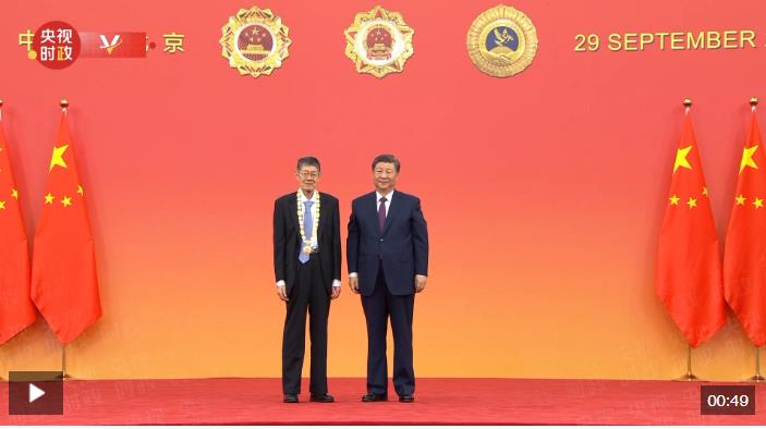 中華人民共和國國家勛章和國家榮譽稱號頒授儀式9月29日上午10時在人民大會堂隆重舉行。中共中央總書記、國家主席、中央軍委主席習(xí)近平向“經(jīng)濟研究杰出貢獻者”國家榮譽稱號獲得者張卓元頒授獎?wù)隆?/p>