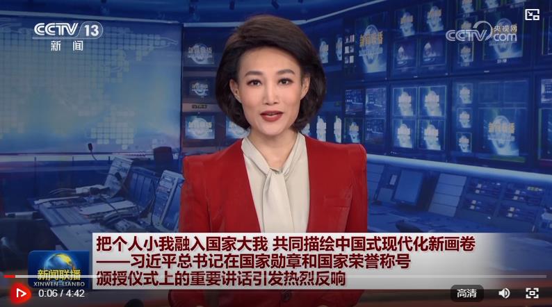 央視網消息(新聞聯播):習近平總書記在國家勛章和國家榮譽稱號頒授儀式上的重要講話在社會各界引發熱烈反響。大家表示,總書記的重要講話鼓舞人心、催人奮進,新征程上要胸懷強國之志,錘煉強國之技,勇建強國之功,勠力同心、開拓進取,共同譜寫人民共和國更加絢麗精彩的新篇章。
