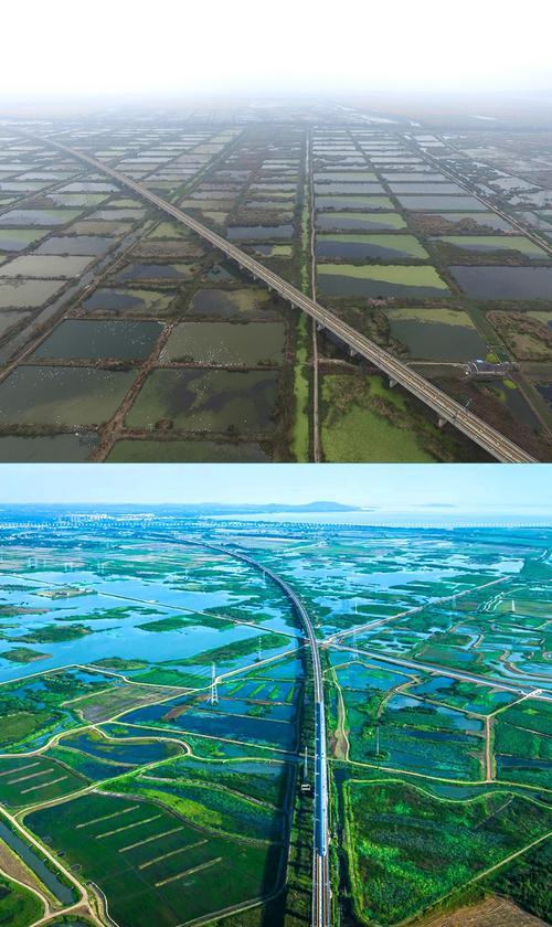 拼版圖片:圖為2011年和2023年鄱陽湖區(qū)的變化,曾經(jīng)湖區(qū)內分布有捕鳥網(wǎng),如今人與自然和諧共生的理念深入人心。攝影:傅建斌 周海燕 制作:賈稀荃