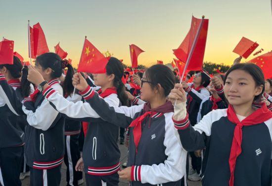 2024年10月1日,天安門廣場舉行升國旗儀式,慶祝中華人民共和國成立75周年。北京2000名大中小學(xué)師生現(xiàn)場觀禮升國旗儀式。