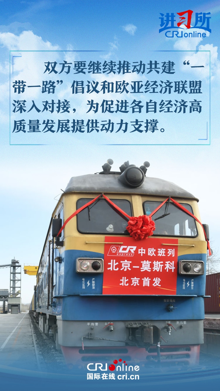 習近平主席在同俄羅斯總統普京會晤時指出,中俄世代友好的深厚情誼不會變,濟世為民的大國擔當不會變。雙方要繼續推動共建“一帶一路”倡議和歐亞經濟聯盟深入對接,為促進各自經濟高質量發展提供動力支撐。