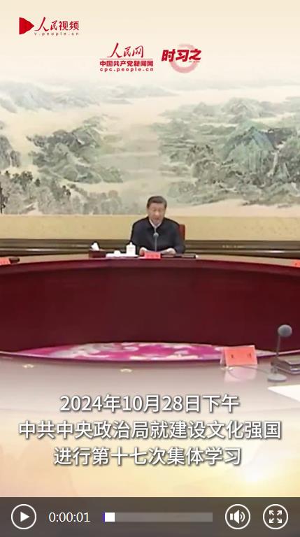 2024年10月28日下午,中共中央政治局就建設文化強國進行第十七次集體學習 。中共中央總書記習近平在主持學習時指出,要在創造性轉化和創新性發展中賡續中華文脈。高揚中華民族的文化主體性,把歷經滄桑留下的中華文明瑰寶呵護好、弘揚好、發展好。