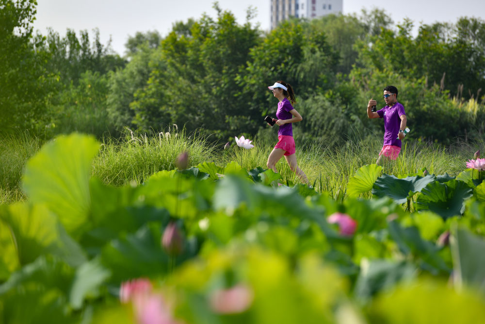 2024年6月23日,市民在陜西省漢中市天漢濕地公園內(nèi)運(yùn)動(dòng)休閑。漢江是長江的最大支流,是南水北調(diào)中線工程的重要水源。近年來,漢中市加強(qiáng)對(duì)漢江源頭和沿岸濕地生態(tài)保護(hù)修復(fù),構(gòu)建人水和諧共生的美麗城市,確保“一泓清水永續(xù)北上”。