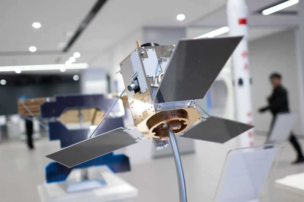 這是在“武創院”展出的“珞珈三號01星”模型。新華社記者 肖藝九 攝