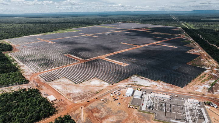 這是2024年6月7日在巴西皮奧伊州拍攝的由中國國家電力投資集團公司(國家電投)巴西公司投資并主導建設的馬蘭加圖光伏電站(無人機照片)。