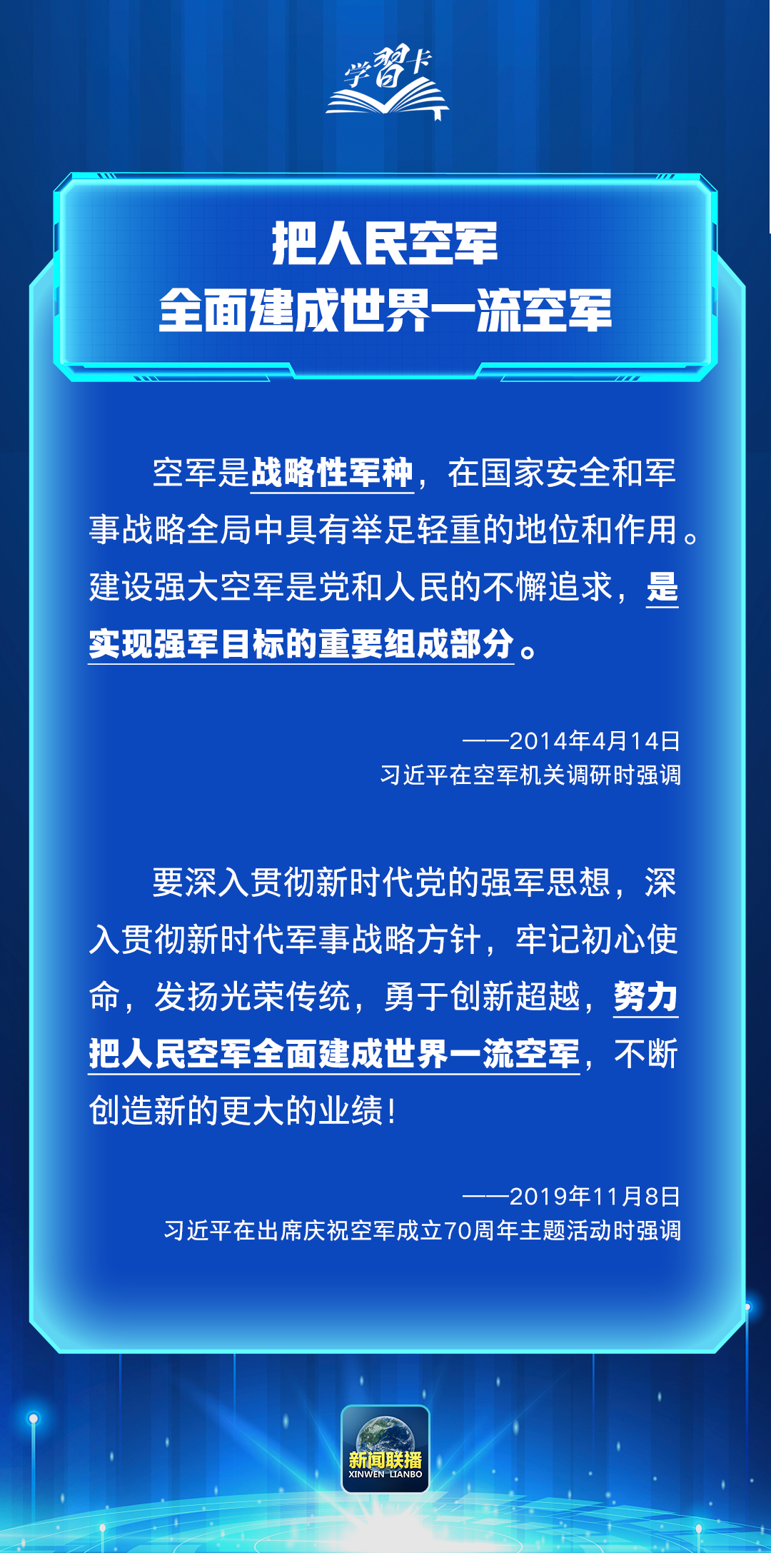 2024年11月11日,是中國(guó)人民解放軍空軍成立75周年紀(jì)念日。在黨的堅(jiān)強(qiáng)領(lǐng)導(dǎo)下,一代代空軍官兵胸懷凌云壯志,搏擊萬(wàn)里長(zhǎng)空,推動(dòng)空軍建設(shè)取得舉世矚目的成就,為維護(hù)國(guó)家主權(quán)、安全、發(fā)展利益建立了不朽功勛。如何把人民空軍全面建成世界一流空軍?一起學(xué)習(xí)↓
