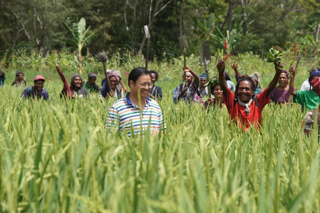2019年12月17日,首次參與中國援巴新旱稻項目的巴布亞新幾內亞農戶,看到自己種植的旱稻長勢喜人。