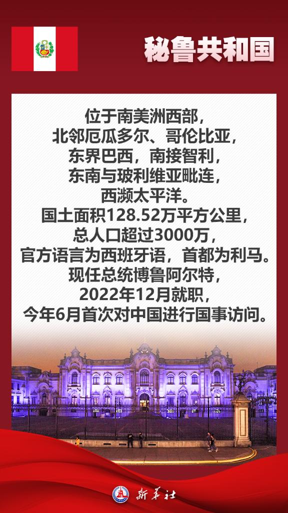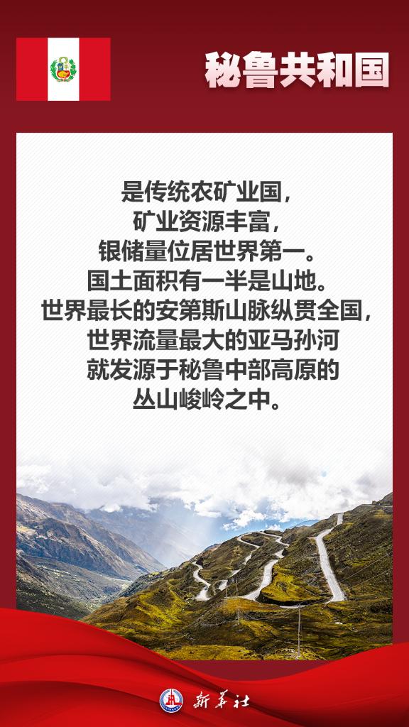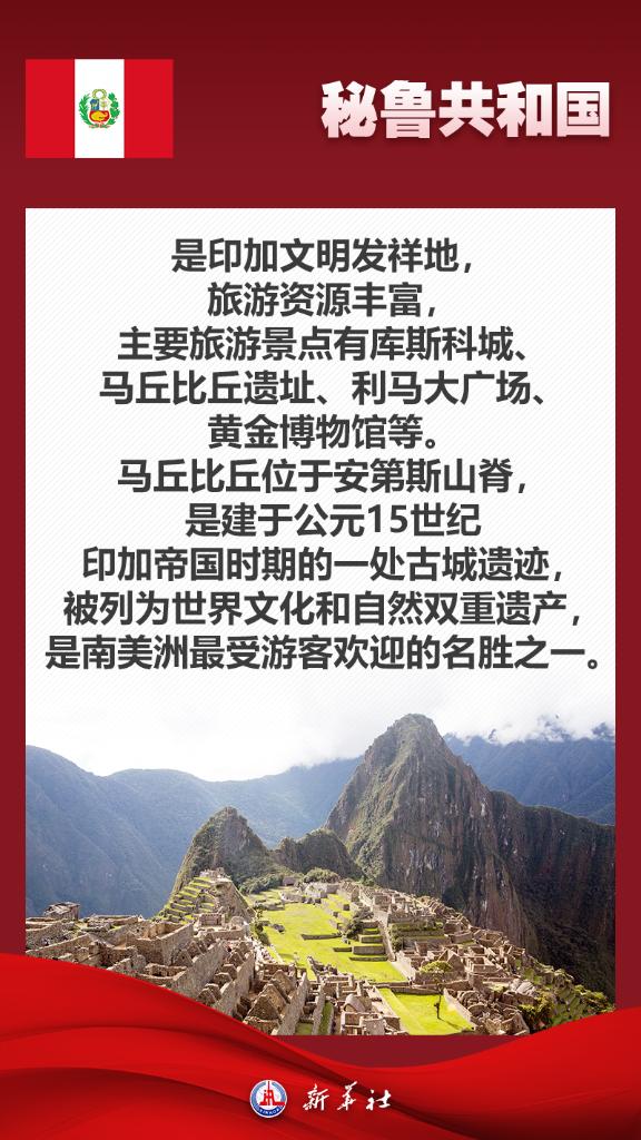 應(yīng)秘魯共和國(guó)總統(tǒng)博魯阿爾特邀請(qǐng),國(guó)家主席習(xí)近平將于11月13日至17日赴利馬出席亞太經(jīng)合組織第三十一次領(lǐng)導(dǎo)人非正式會(huì)議并對(duì)秘魯進(jìn)行國(guó)事訪(fǎng)問(wèn)。秘魯位于南美洲西部,是印加文明發(fā)祥地,也是最早同新中國(guó)建交的拉美國(guó)家之一。關(guān)于秘魯,七張海報(bào)帶你了解更多——