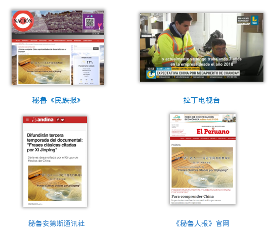 《平“語”近人——習近平喜歡的典故》第三季(西班牙語版)即日起在秘魯國家廣播電視臺、秘魯電視聯(lián)播網、秘魯廣播節(jié)目集團電視端、秘魯安第斯新聞臺、泛美電視臺、拉丁電視臺、秘魯《民族報》等多平臺落地播出。14日,秘魯最具影響力的官方報紙《秘魯人報》及其官網刊發(fā)節(jié)目在秘魯落播的消息。秘魯安第斯通訊社、《共和國報》、秘魯EXITOSA電臺、秘魯消息網以及拉美新聞聯(lián)盟官網等拉美主流媒體播發(fā)相關報道。