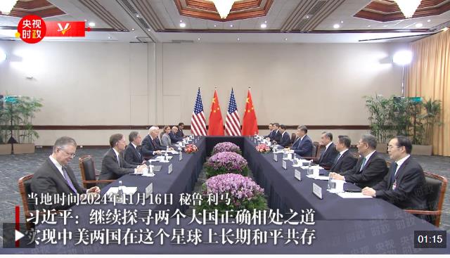 當地時間11月16日下午,國家主席習近平在利馬同美國總統拜登舉行會晤。