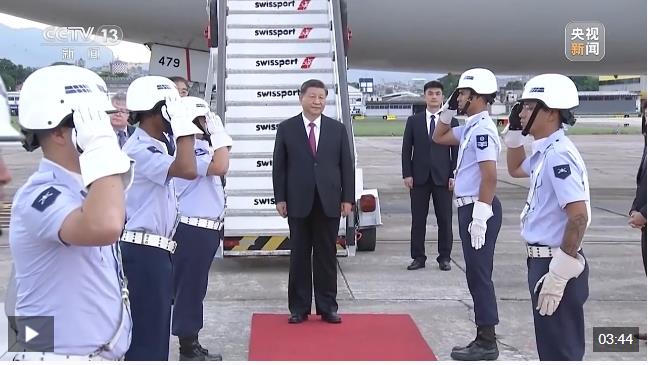 當地時間11月17日下午,習主席乘專機抵達里約熱內盧加里昂空軍基地。巴西政府高級官員熱情迎接。巴西空軍號手吹號致敬,禮兵分列紅毯兩側。