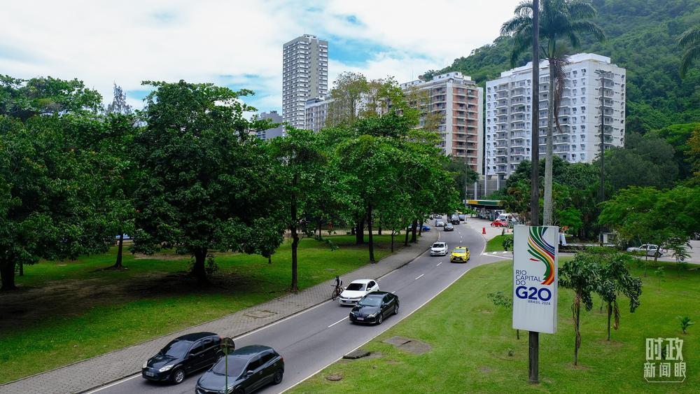 巴西里約熱內盧街頭的G20標識。(總臺央視記者曹亞星拍攝)