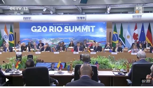 當天,G20領導人第十九次峰會在里約熱內盧現代藝術博物館開幕。峰會主題是“構建公正的世界和可持續的星球”,重點聚焦全球不平等、抗擊饑餓與貧困、可持續發展和全球治理改革等議題。