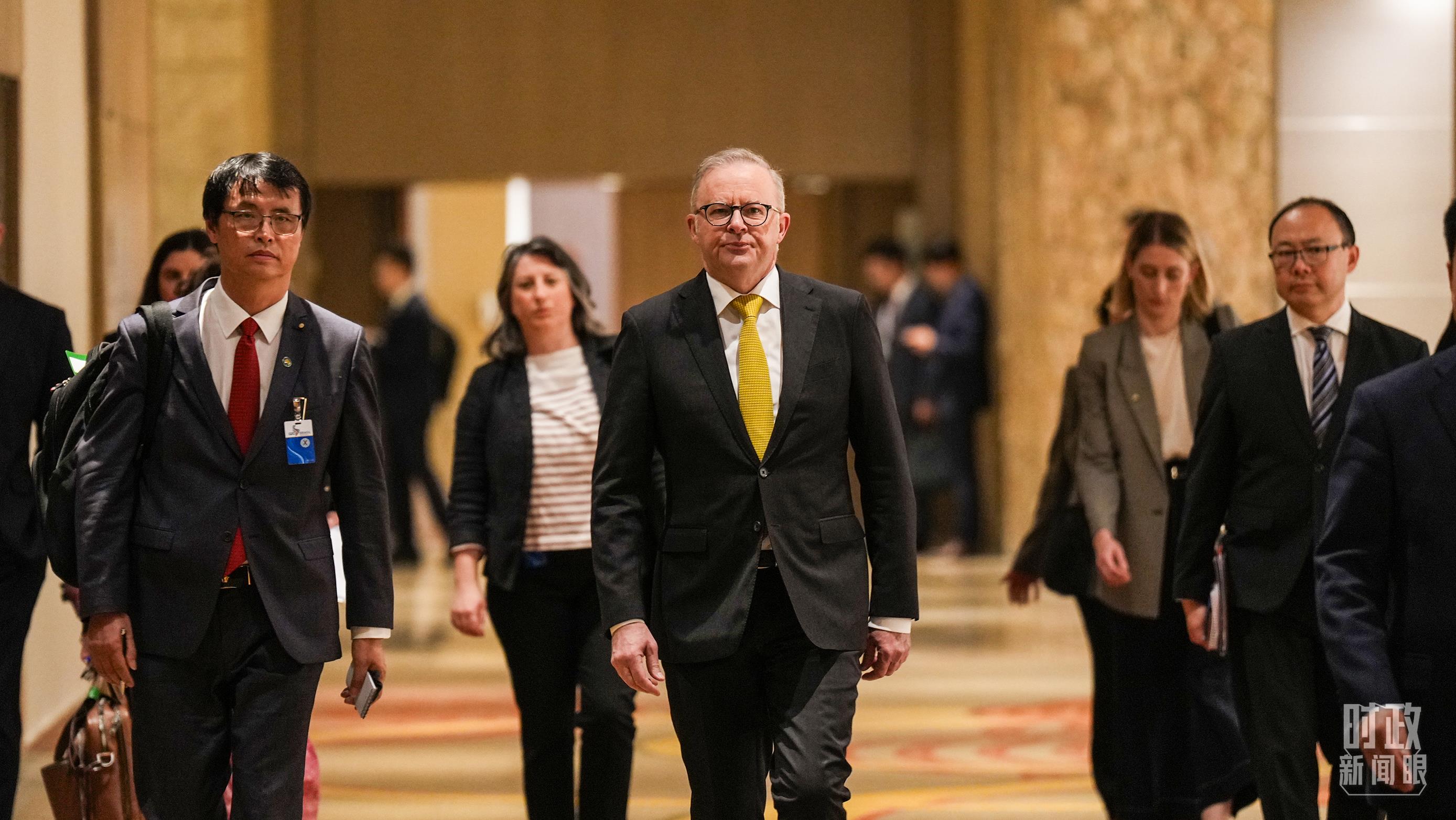 澳大利亞總理阿爾巴尼斯抵達會見現場。(總臺記者李晉拍攝)