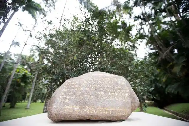 △巴西里約熱內盧植物園,來自中國福建的華安石紀念牌記載:“1812年,首批抵達巴西的中國人在此栽下茶樹”。