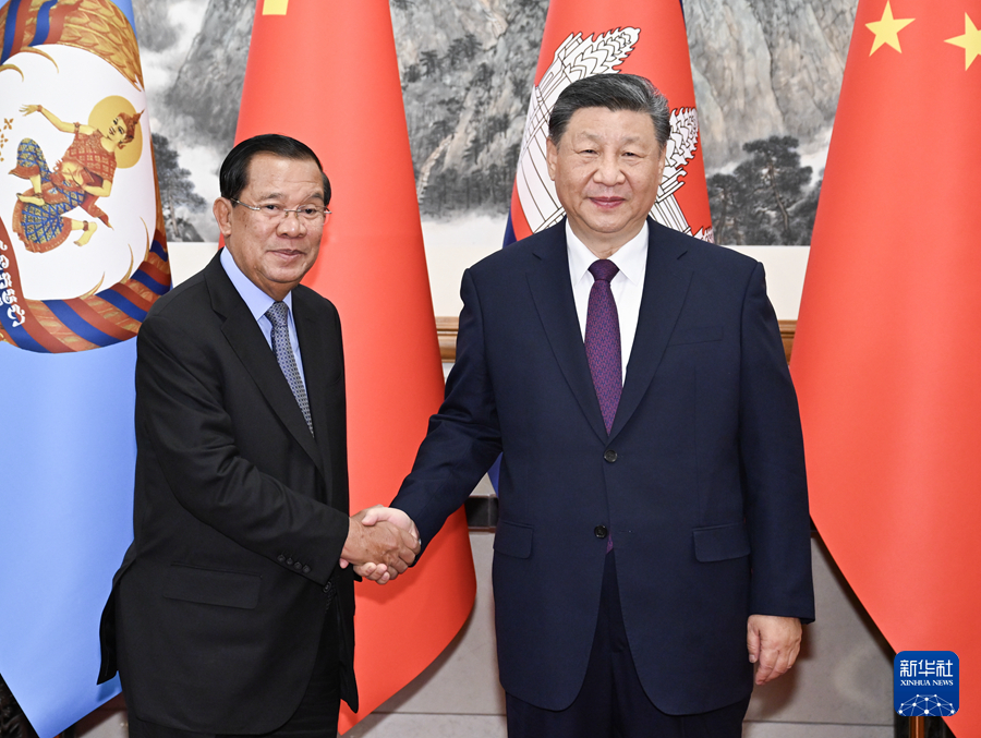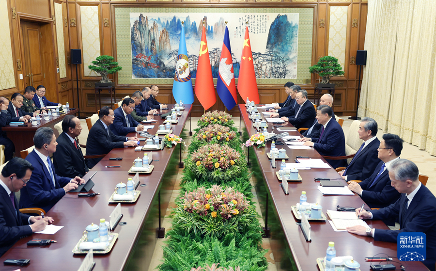 12月3日,中共中央總書記、國家主席習近平在北京釣魚臺國賓館同柬埔寨人民黨主席、參議院主席洪森舉行會談。新華社記者 謝環馳 攝