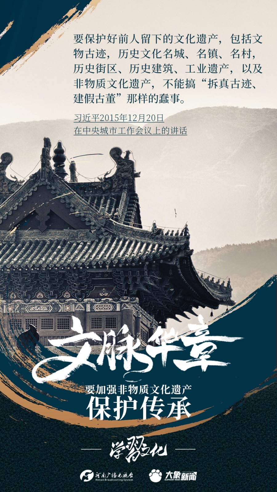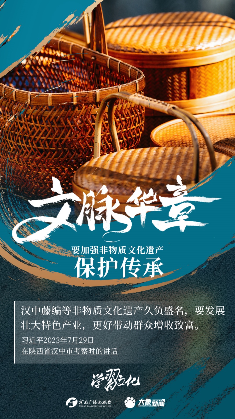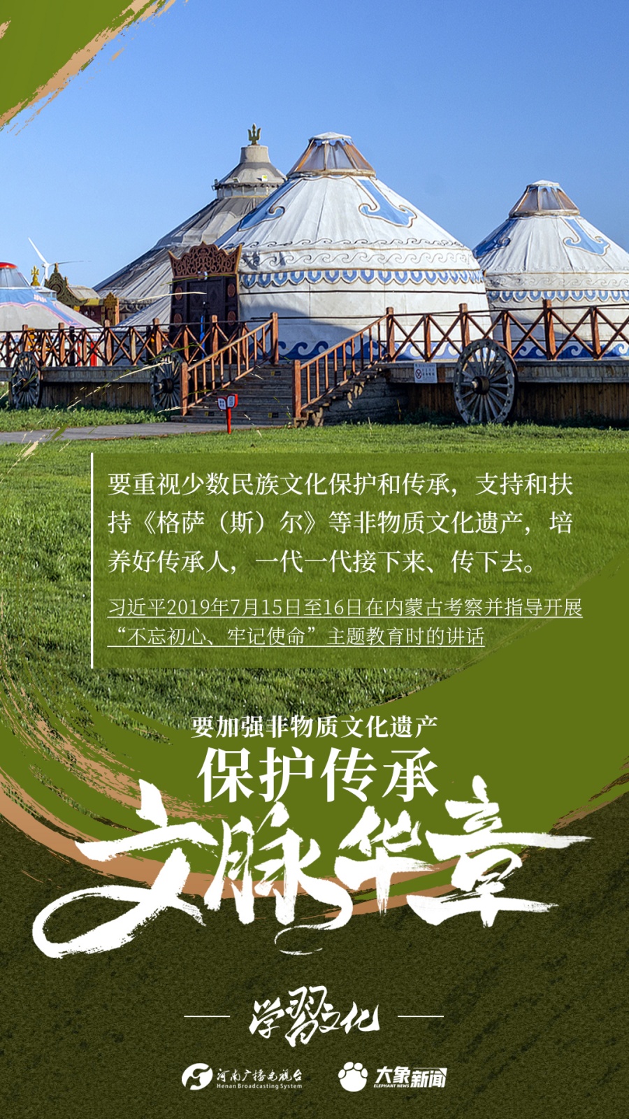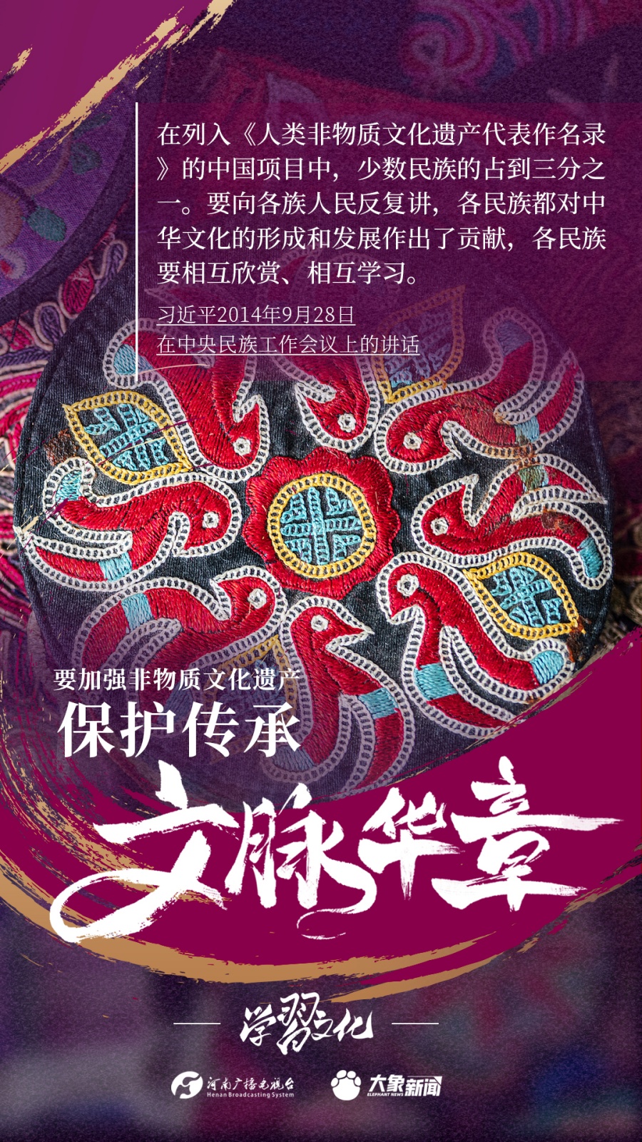 非物質文化遺產是中華優秀傳統文化的重要組成部分,是中華文明綿延傳承的生動見證,是我國各族人民寶貴的精神財富。習近平總書記十分關心非物質文化遺產的保護傳承,多次強調“要扎實做好非物質文化遺產的系統性保護”“培養好傳承人”等。大象新聞為您梳理,邀您一起學習、領悟、踐行。