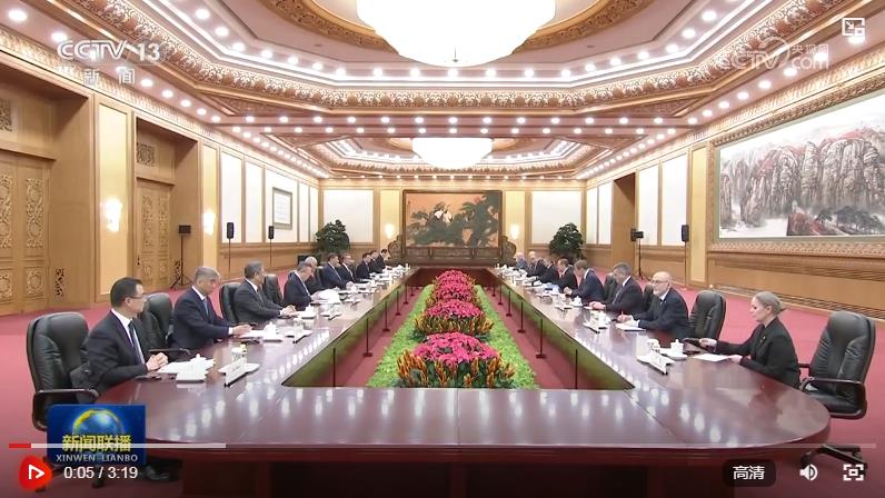 習近平表示,中俄建交75年來,兩國攜手走出了一條大國、鄰國相互尊重、和睦相處、合作共贏的嶄新道路,樹立了新型國際關系和相鄰大國關系的典范。中方愿同俄方加強發展戰略對接,挖掘兩國合作內生動力,不斷造福兩國和兩國人民。中俄要密切在聯合國、金磚合作機制、上海合作組織等多邊框架內的溝通和協作,堅定維護以聯合國為核心的國際體系,踐行真正的多邊主義,推動國際秩序朝著更加公正合理的方向發展,共同維護全球戰略穩定和國際公平正義。