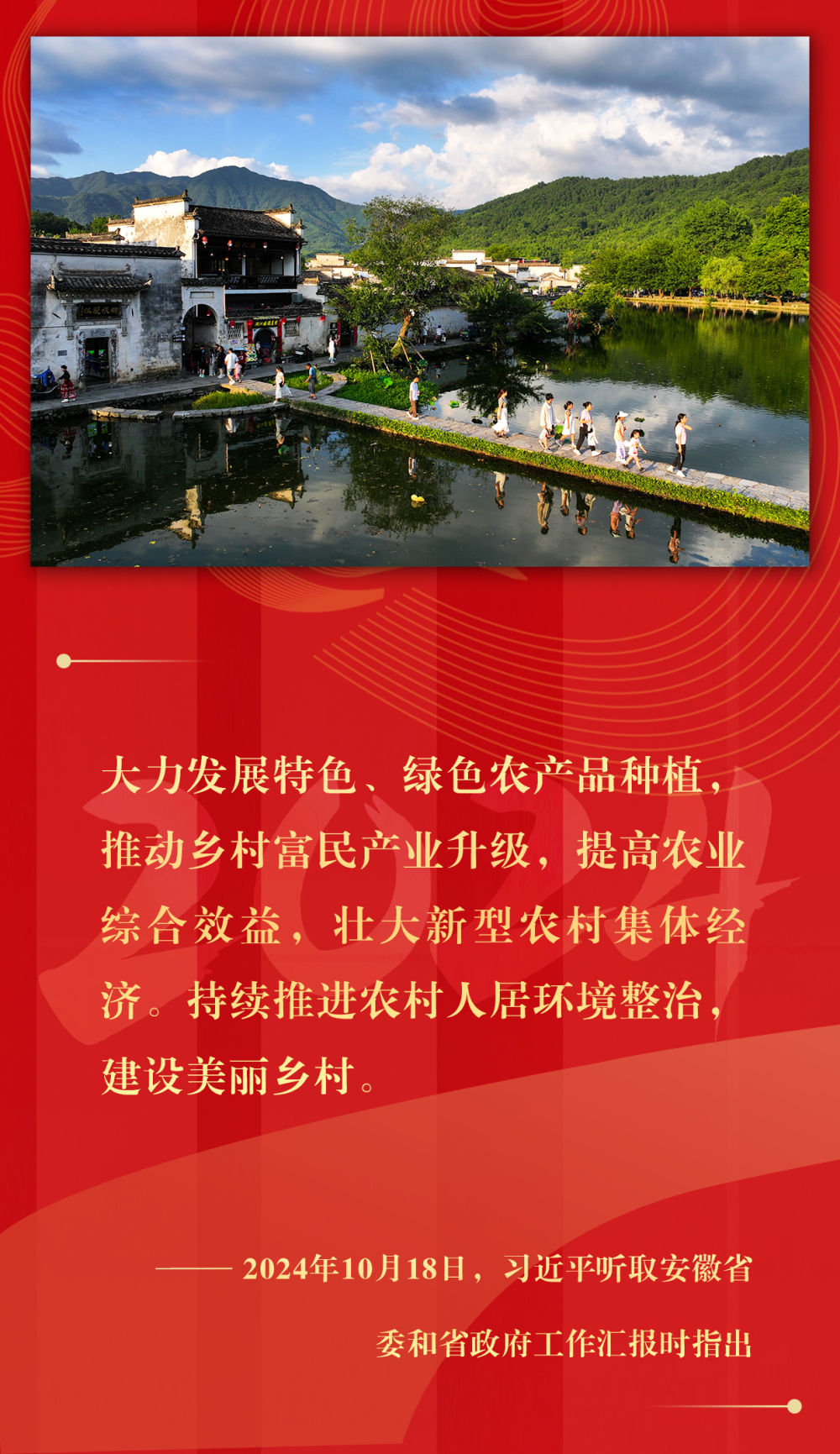 堅持城鄉融合發展、持續深化農村改革、支持強農惠農富農、拓寬農民增收渠道、強化農業科技和裝備支撐、確保糧食和重要農產品穩產保供……2024年,習近平總書記在基層考察期間,持續關注鄉村振興,多次提出重要指示,落子關鍵處、科學謀布局,千方百計推動農業增效益、農村增活力、農民增收入。
