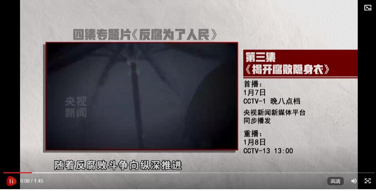【解說詞】《反腐 為了人民》第三集《揭開腐敗隱身衣》,敬請關注。