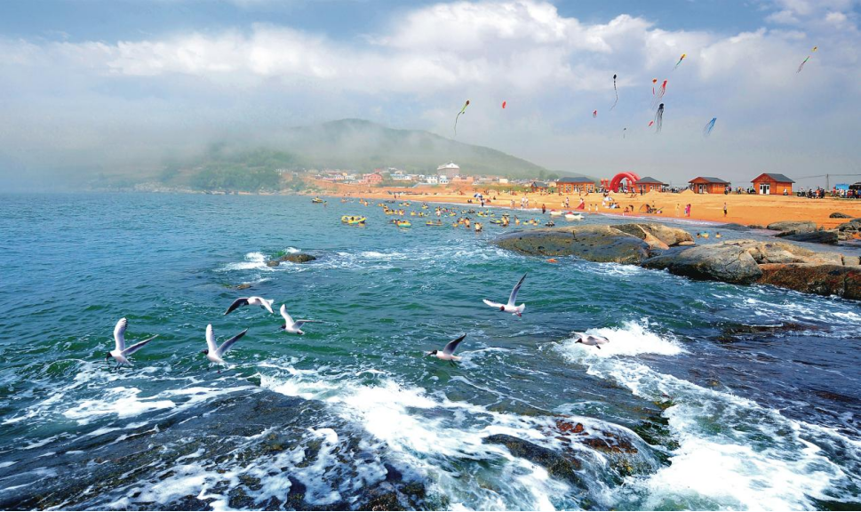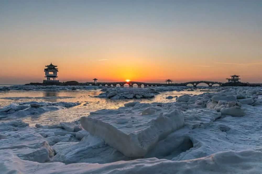 數九隆冬,位于葫蘆島興城市的三礁攬勝景區附近海水結冰。