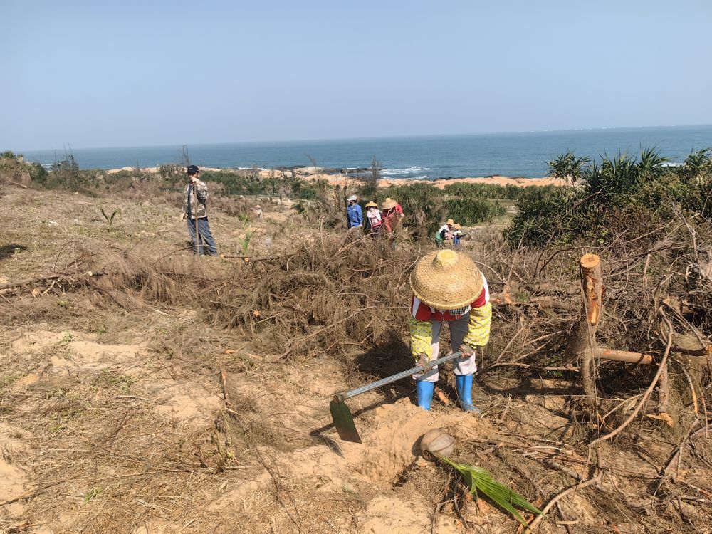 “和原來的木麻黃樹相比,椰子樹不僅抗風能力更強,也更加美觀?!惫と隧n吉衍嫻熟地將一鍬紅土鏟到剛種下的椰苗根部,并輕輕拍打夯實,“這一片椰林要種280畝,我們每天干八九個小時,這幾天就要種完。”
