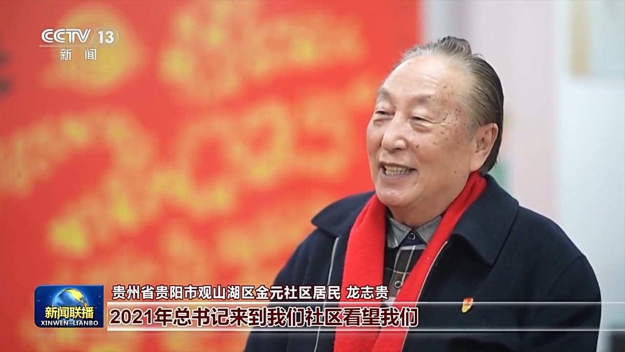 貴州省貴陽市觀山湖區金元社區居民 龍志貴:2021年總書記來到我們社區看望我們,讓我們感受到關心和關愛?,F在國家的政策都很好,退休生活過得很安逸。