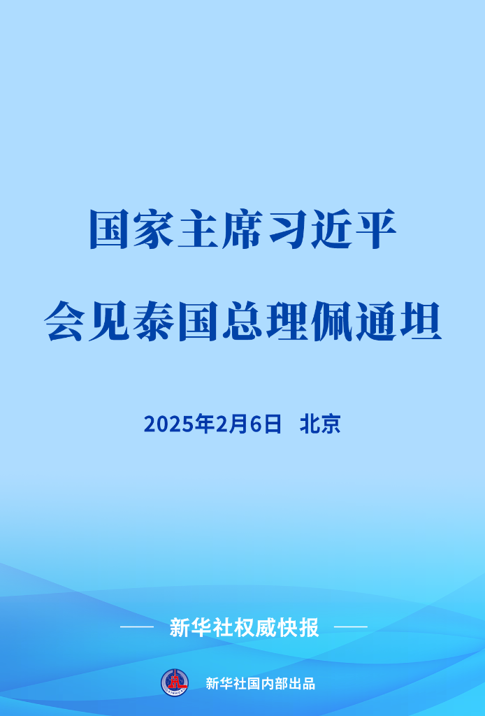 2月6日上午,國家主席習近平在北京人民大會堂會見來華進行正式訪問的泰國總理佩通坦。