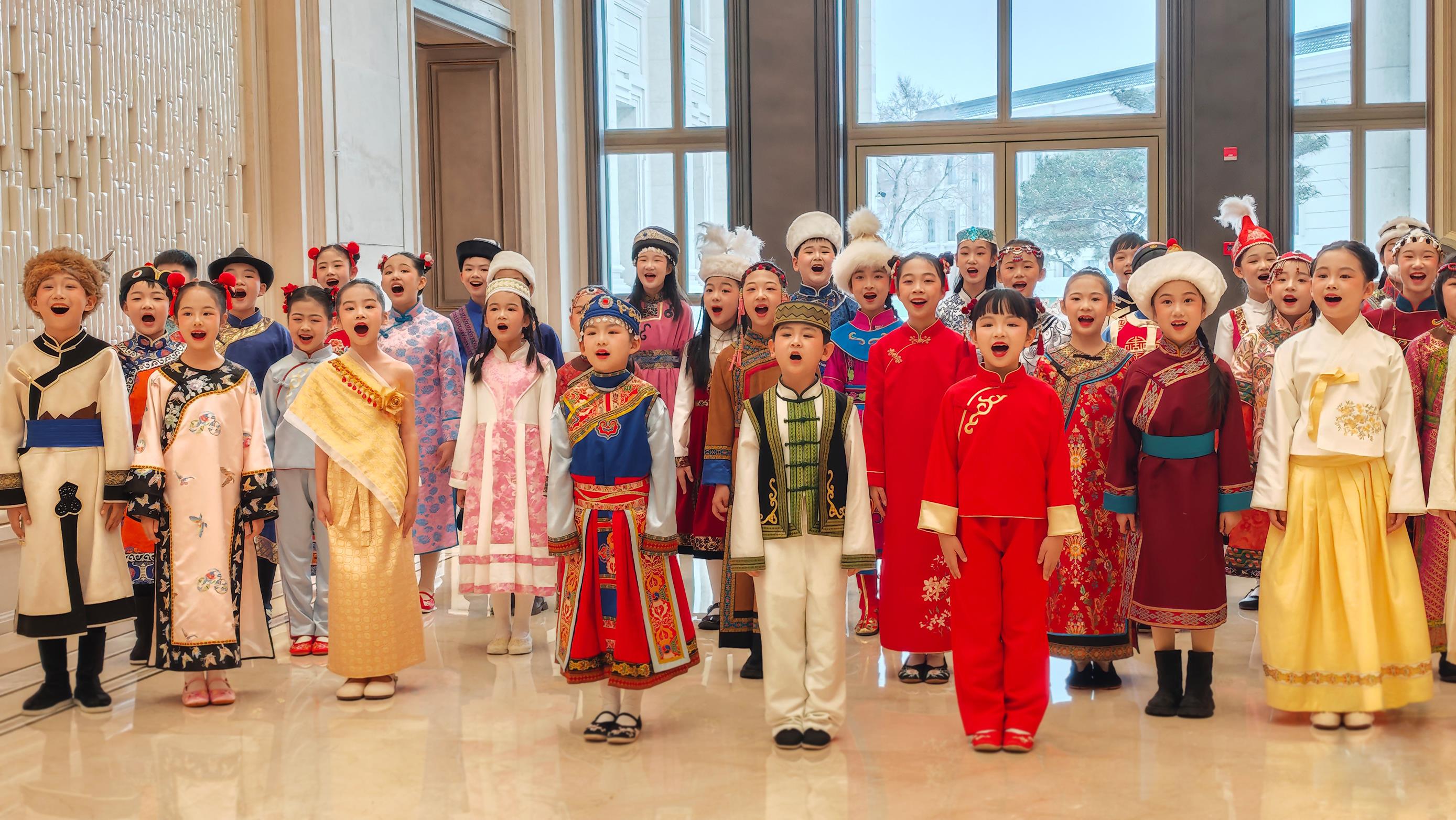 第九屆亞冬會開幕式歡迎宴會現場,少年兒童表演民歌《烏蘇里船歌》。