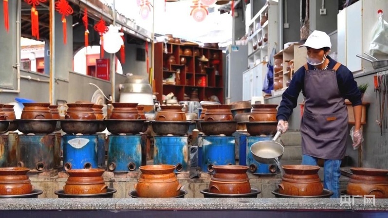 制作盬子雞的盬子,來自當?shù)厥〖壏俏镔|(zhì)文化遺產(chǎn)代表性傳承人母先才的陶藝館。2014年,在政府的幫扶下,母先才依托傳統(tǒng)技藝開設(shè)了陶藝館。現(xiàn)在,他不僅把原來的土窯改成了更加環(huán)保的電窯,還把工坊變?yōu)榧铺铡⒀袑W、餐飲為一體的陶藝館,受到游客歡迎。