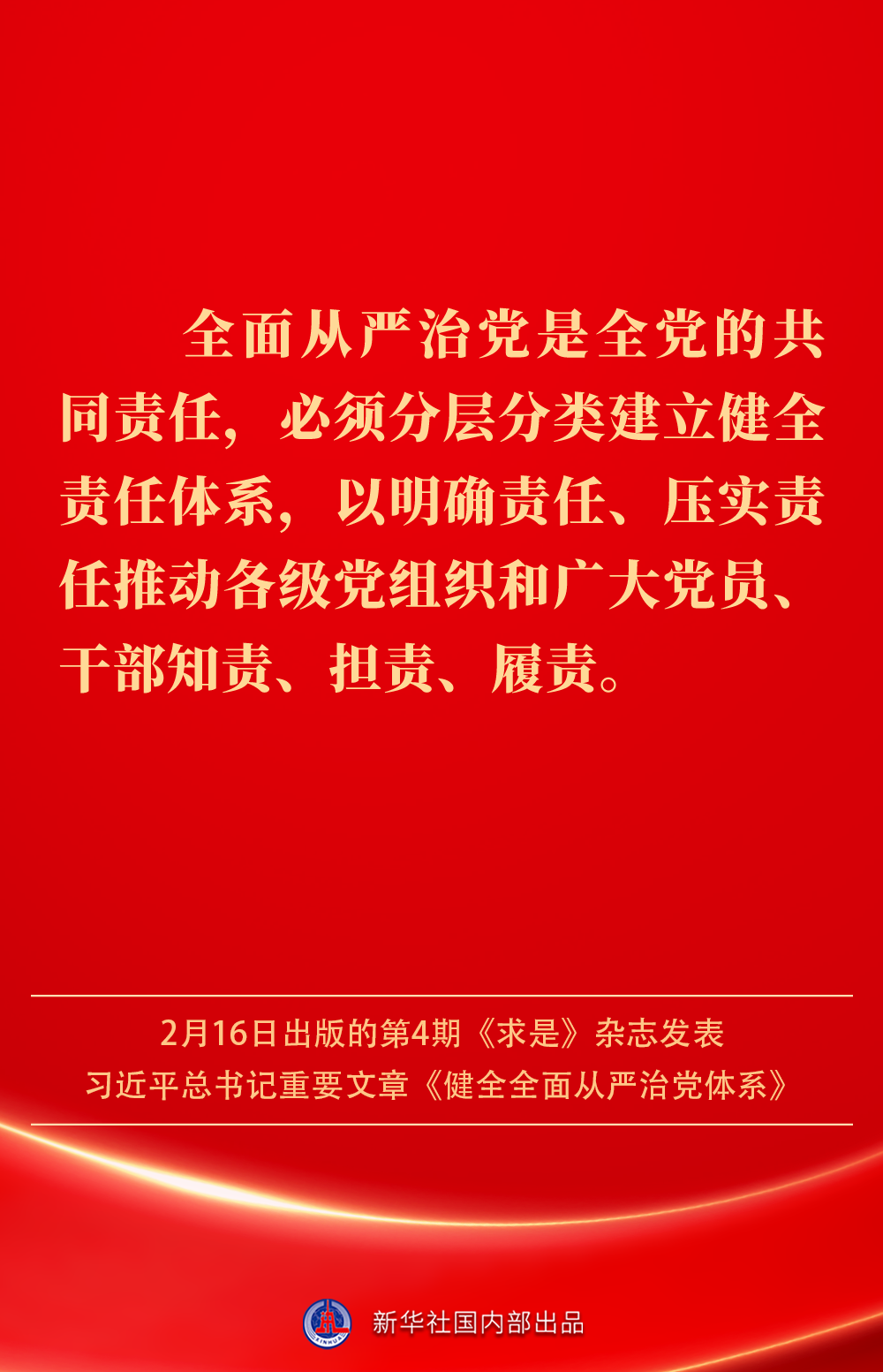 2月16日出版的第4期《求是》雜志發表習近平總書記重要文章《健全全面從嚴治黨體系》。如何進一步健全要素齊全、功能完備、科學規范、運行高效的全面從嚴治黨體系?習近平總書記闡明要旨——