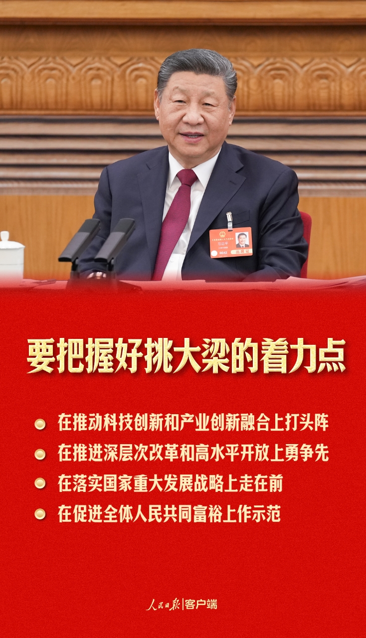 3月5日下午,習近平在參加他所在的十四屆全國人大三次會議江蘇代表團審議時又一次強調了“經濟大省挑大梁”的責任,要求經濟大省要挑大梁為全國發展大局作貢獻。