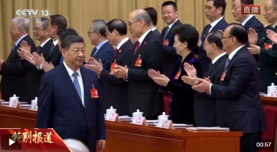 3月8日上午9時,十四屆全國人大三次會議第二次全體會議在人民大會堂舉行。中共中央總書記、國家主席、中央軍委主席習近平等黨和國家領導人步入會場,出席會議。