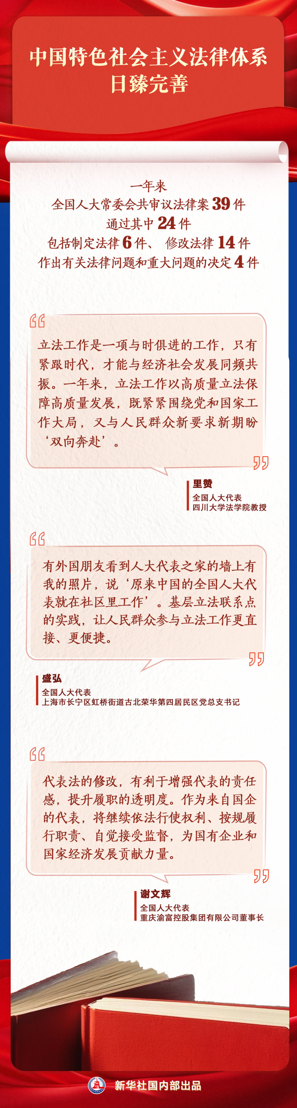 全國人大常委會工作報告展現(xiàn)重點領(lǐng)域、新興領(lǐng)域、涉外領(lǐng)域立法“成績單”